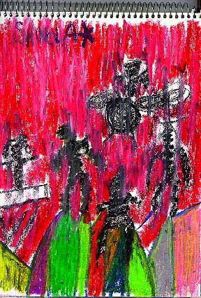 Our friend Alexis made this groovy pastel portrait of us at last November's show at the Cave in Chapel Hill. It got smudged rather badly.