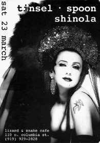 - Saturday, March 23, 1996 Lizard and Snake Cafe (opening for Spoon and Tinsel)
